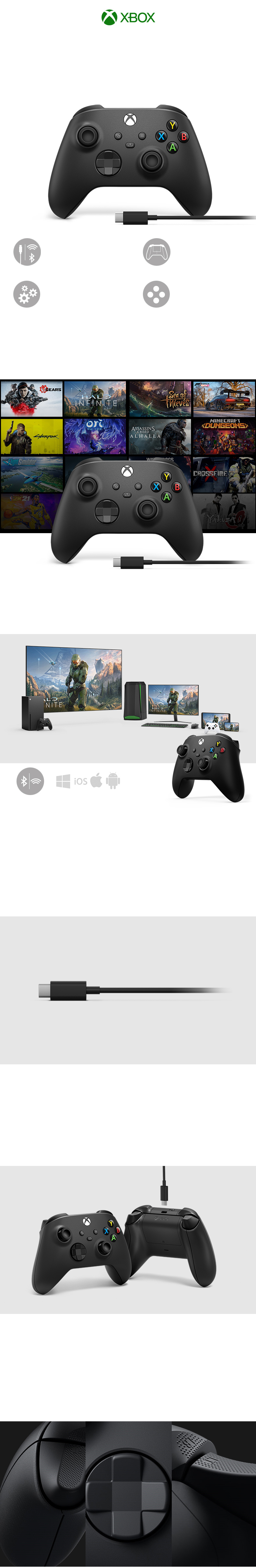 微軟Xbox無(wú)線(xiàn)控制器 磨砂黑+USB-C線(xiàn)纜 PC游戲手柄 藍牙連Win10/平板/手機 無(wú)線(xiàn)連Xbox 有線(xiàn)連Steam
