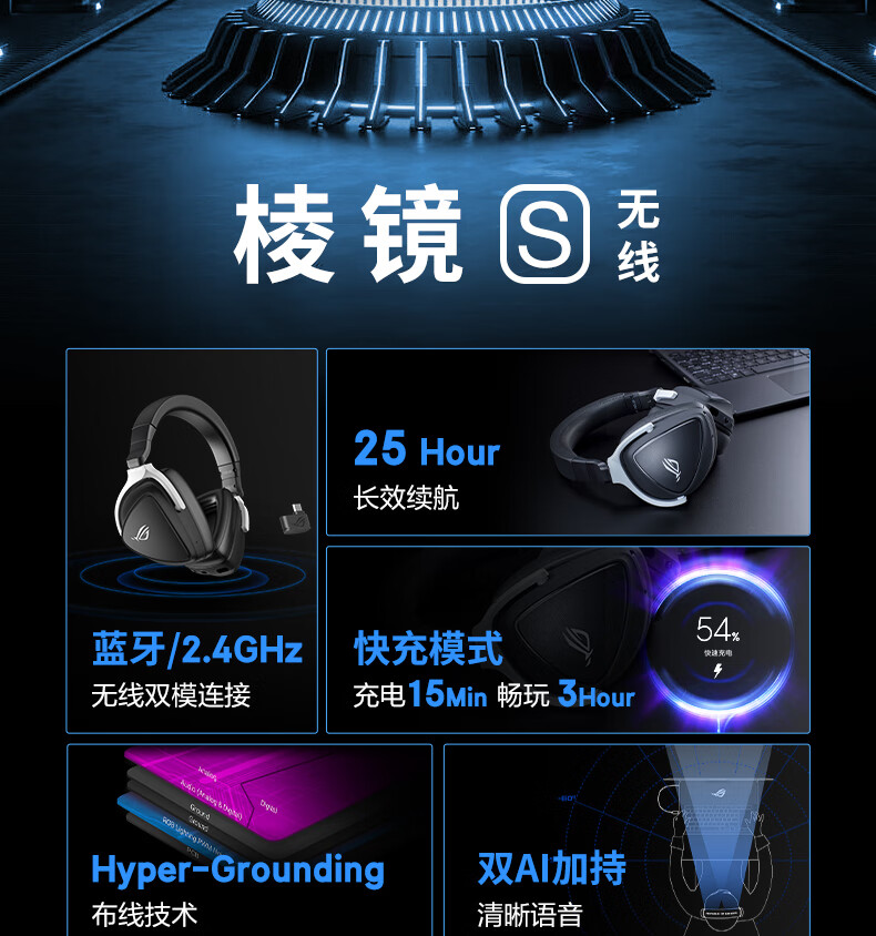 ROG 棱鏡s無(wú)線(xiàn) 游戲耳機 頭戴式耳機 雙模連接 藍牙無(wú)線(xiàn) 環(huán)繞7.1音效 輕量化 AI降噪麥克風(fēng) ROG手機耳機