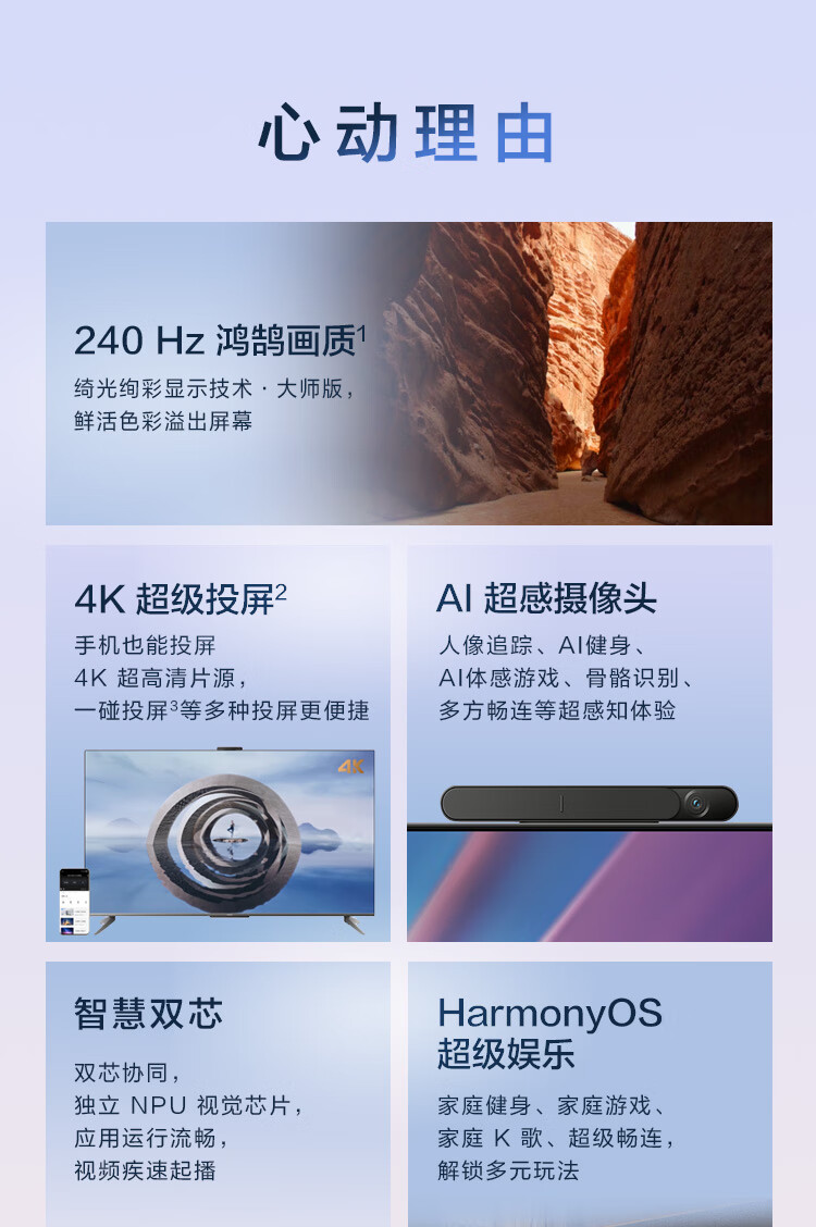商品名稱(chēng):華為智慧屏 SE65 MEMC 65英寸超薄全面屏 4K超高清智能液晶護眼電視機 2GB+16GB 以舊換新HD65KHAA