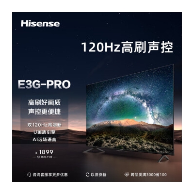 商品名稱(chēng):海信電視 55E3G-PRO 55英寸4K 120Hz防抖2+32G內存遠場(chǎng)語(yǔ)音智能超薄全面屏液晶平板電視機 以舊換新