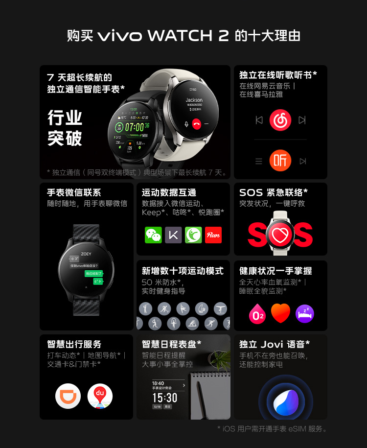 vivo WATCH 2 原力黑 智能手表 血氧監測 智能運動(dòng) SOS緊急聯(lián)絡(luò ) eSIM獨立通信 強勁續航 vivo手表iqoo手表