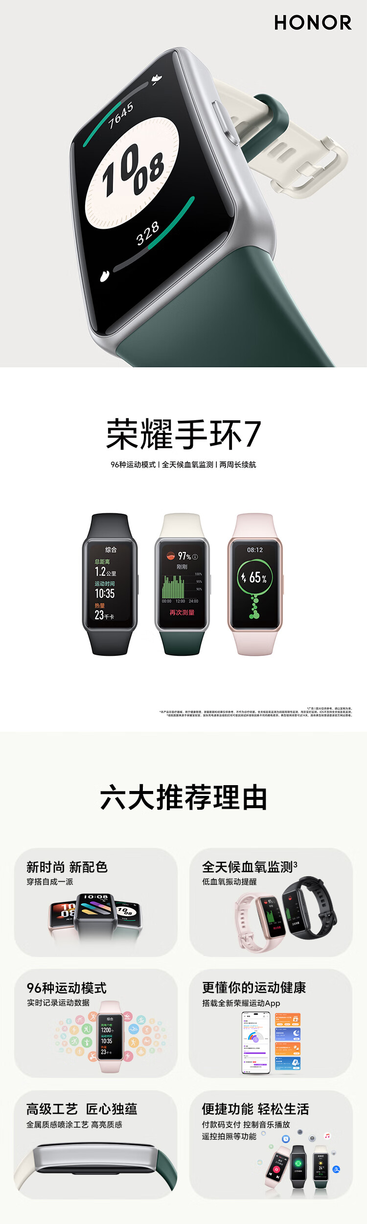 商品名稱(chēng):榮耀手環(huán)7 全天候血氧監測 96種運動(dòng)模式 智能手環(huán) 運動(dòng)手環(huán) 智能心率 50米防水 幻夜黑