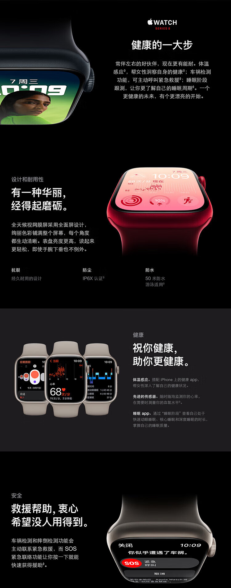 商品名稱(chēng):Apple Watch Series 8 智能手表GPS款41毫米銀色鋁金屬表殼白色運動(dòng)型表帶MP6K3CH/A