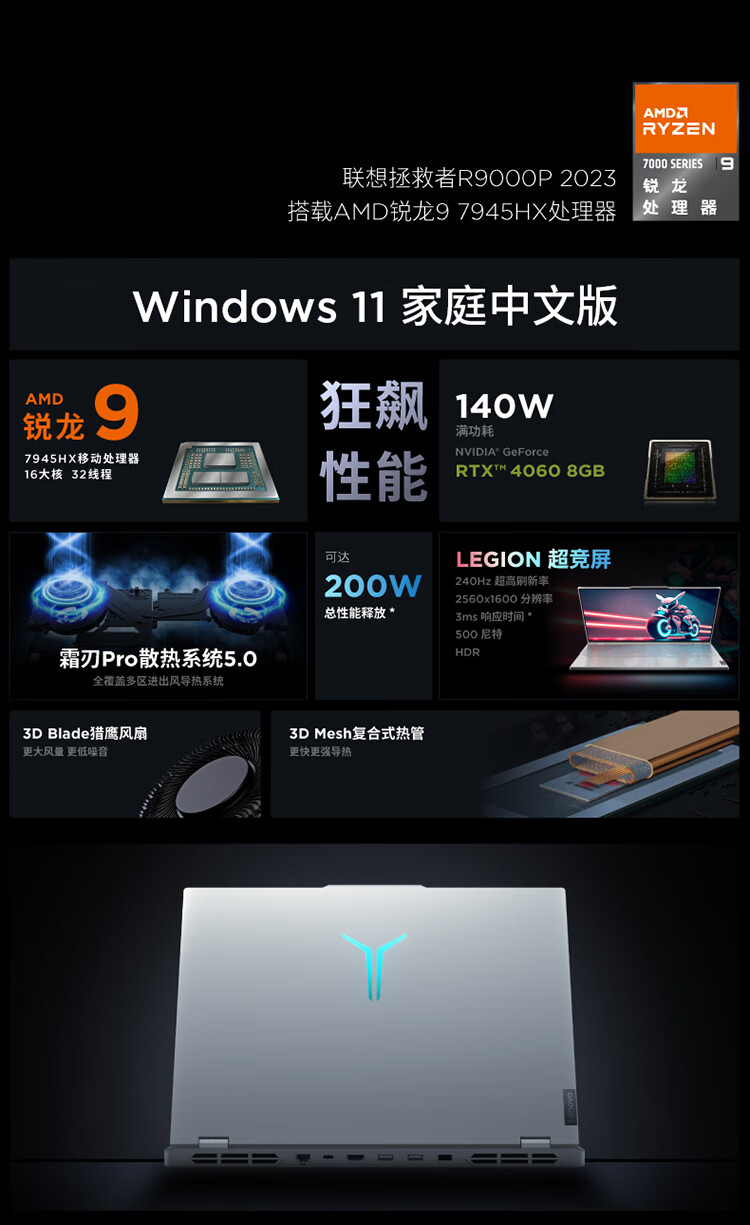 聯(lián)想拯救者R9000P 16英寸游戲筆記本電腦(8核16線(xiàn)程R7-6800H 16G 512G RTX3060 2.5k 165Hz高色域)灰