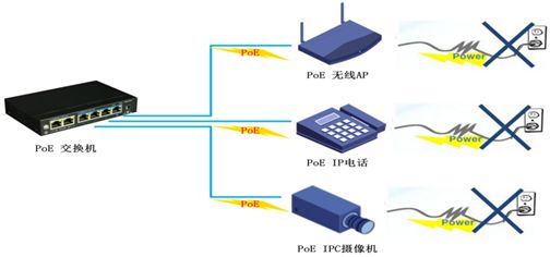 PoE交換機就是支持網(wǎng)線(xiàn)供電的交換機,PoE交換機不僅具有普通交換機所具有的傳輸功能,還能通過(guò)網(wǎng)線(xiàn)給另一端的設備供電。對整個(gè)網(wǎng)絡(luò )而言,采用PoE交換機可以減少布線(xiàn),系統成本更低,可靠性更高。