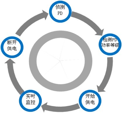 首先我們了解一下PoE的供電過(guò)程。 當在一個(gè)網(wǎng)絡(luò )中布置PSE供電端設備時(shí),PoE以太網(wǎng)供電工作過(guò)程如下圖所示。