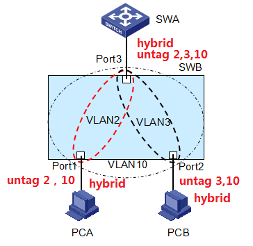 Private Vlan的父vlan(primary vlan)和子vlan(secondary vlan)是hybrid端口